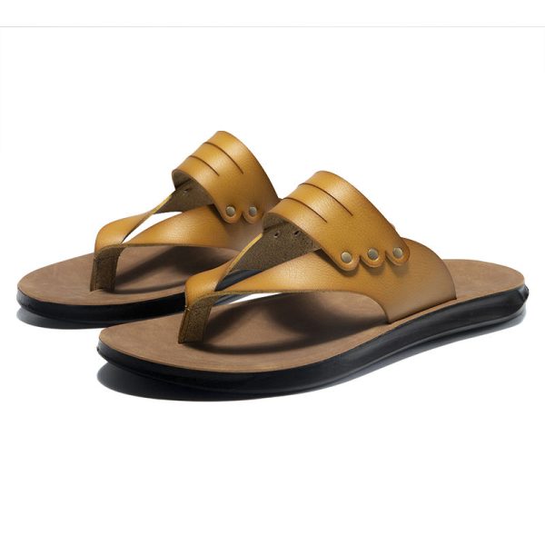 Leisure outdoor leather flip flops